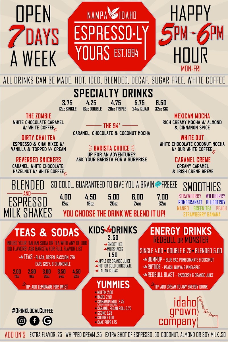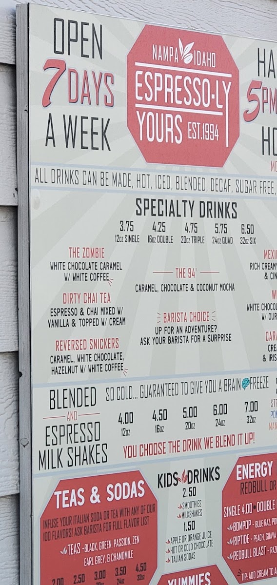 Welcome to Espresso-ly Yours, your new favorite coffee haven located at 1615 Nampa-Caldwell Blvd, Nampa, ID. This delightful coffee shop is celebrated for its creative drink offerings and mouthwatering pastries. Customers rave about the friendly service and the dedication of the staff, making each visit feel personal and warm.
